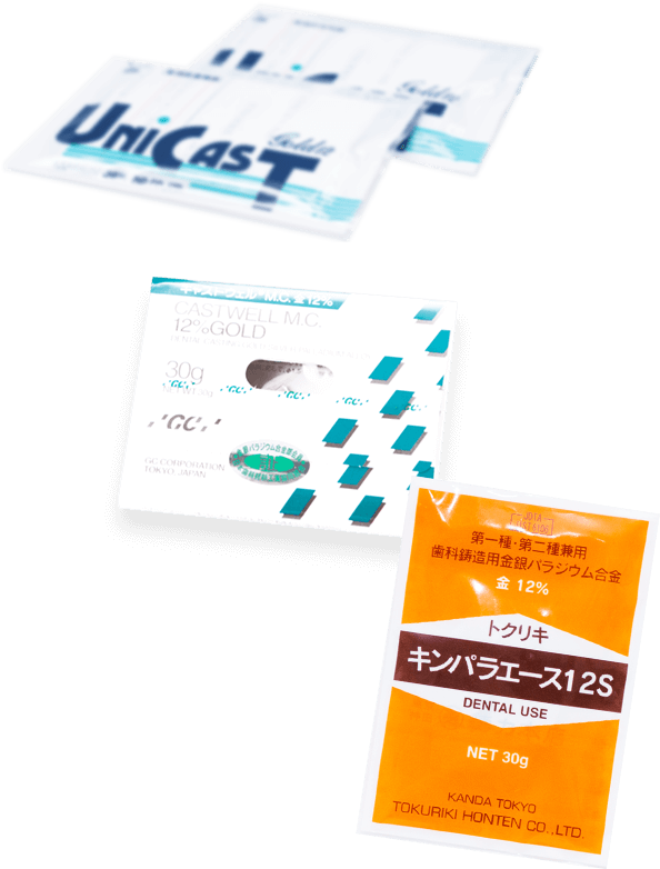 また、金パラの他に、歯科用純金5g金製品、金合金、銀合金などの歯科材料も未開封・開封品問わず、1gからお買い取りしております。
